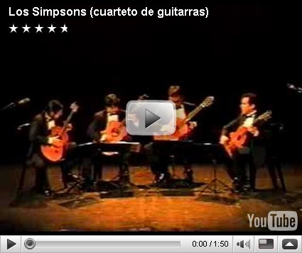 O Cuarteto de Guitarras Aranjuez fez um arranjo com o tema principal da série televisiva “The Simpsons”. Está óptimo, apesar da captação de som não ser famosa.